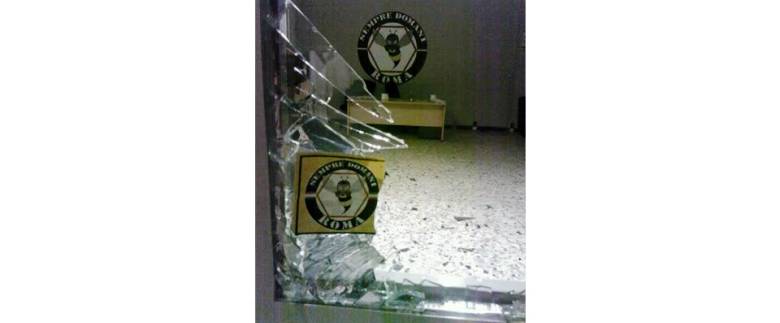 Fuori dalla sede dell’Associazione, nata nel 2010 dall’iniziativa di un gruppo di ragazzi del quartiere Appio-Tuscolano, incontriamo una quindicina di militanti che si sono distribuiti il lavoro: c’è chi spazza, chi aggiusta le vetrate infrante con del plexiglass, chi parla con i giornalisti e chi ha portato il caffè per tutti. Tra loro, Giovanni Feola, responsabile e coordinatore del Tenaglia, ci racconta dell’azione vandalica dell’altra notte, poi rivendicata da un sedicente coordinamento antifascista chiamato ‘Roma antifascista e meticcia’.