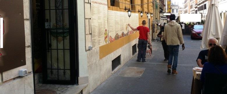 Aveva tappezzato il muro perimetrale del suo ristorante con 20 metri di affissioni irregolari che sono state prontamente rimosse dalla Polizia Locale di Roma che, in una nota, spiega che oggi, congiuntamente a personale di Aequa Roma e della Asl, sono state anche controllate 20 attività di somministrazione e vicinato in via Gioberti e via Manin, recuperando 623.000,00 euro di tributi non versati.