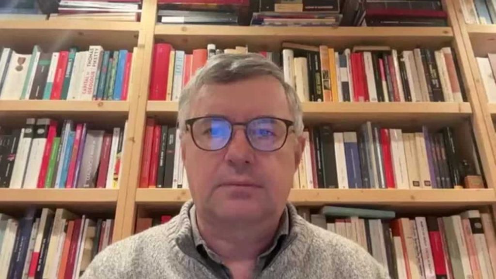 Fotogramma del video oscurato di Alessandro Barbero (screenshot dal canale YouTube di Giusto dire NO)