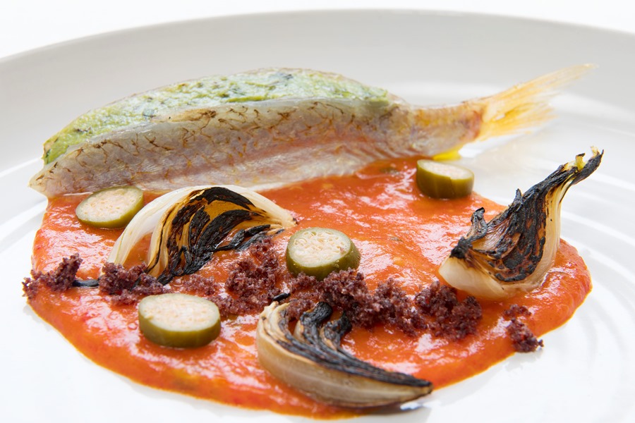 Crudo di gamberi rossi, Caviale, quenelle di formaggio morbido e vapore di Limone Gamberi in crosta di noci su broccolo Friariello e fonduta Provolone del Monaco Calamaro ripieno di zucchine e provola con filigrana di verdure in tempura Verdure di Stagione in diverse consistenze e cotture con fiocchi di Ricotta di bufala Linguine al limone con battuto di scambi, caviale e provolone del monaco Gnocchi di patate alla Sorrentina Tortelli ripieni di astice con fonduta di Provolone del Monaco, confit di pomodorini gialli e rossi ed erbette di Montoro Filetto di Ricciola alla plancia su caponata di verdure estive e salsa mediterranea Filetto di Pezzogna cotto sulla pelle su morbido di patate e ristretto al limone TRIGLIA SCOTTATA SU RISTRETTO DI POMODORO, Cipollotto bruciato, polvere di Olive nere e Capperi in fiore Dorso di Agnello alle Erbette aromatiche con Patate rosolate e piccole verdure di stagione “Limone-Limone-Limone” I sapori del limone in diverse consistenze e temperature Cilindro di Cheesecake con salsa ai frutti Sfera di Limone con frutta di stagione al taglio Tagliata di frutta di stagione con gelo di limone e frutti rossi su waffle croccante