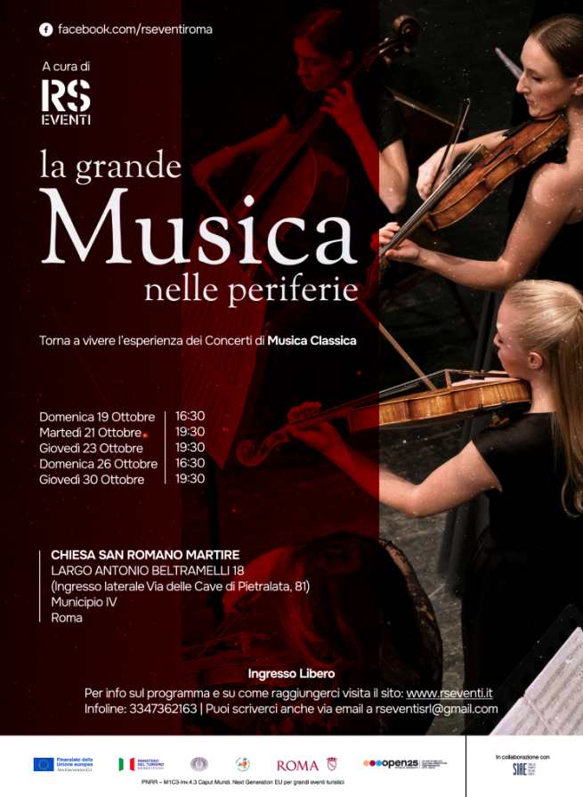 “La Grande Musica nelle Periferie” è una delle iniziative più significative del calendario culturale cittadino di quest’autunno. Con l’ingresso libero e un programma che unisce qualità e varietà, la rassegna si candida a diventare un punto di riferimento per chi ama la musica e per chi vuole scoprire un nuovo modo di vivere la periferia romana.